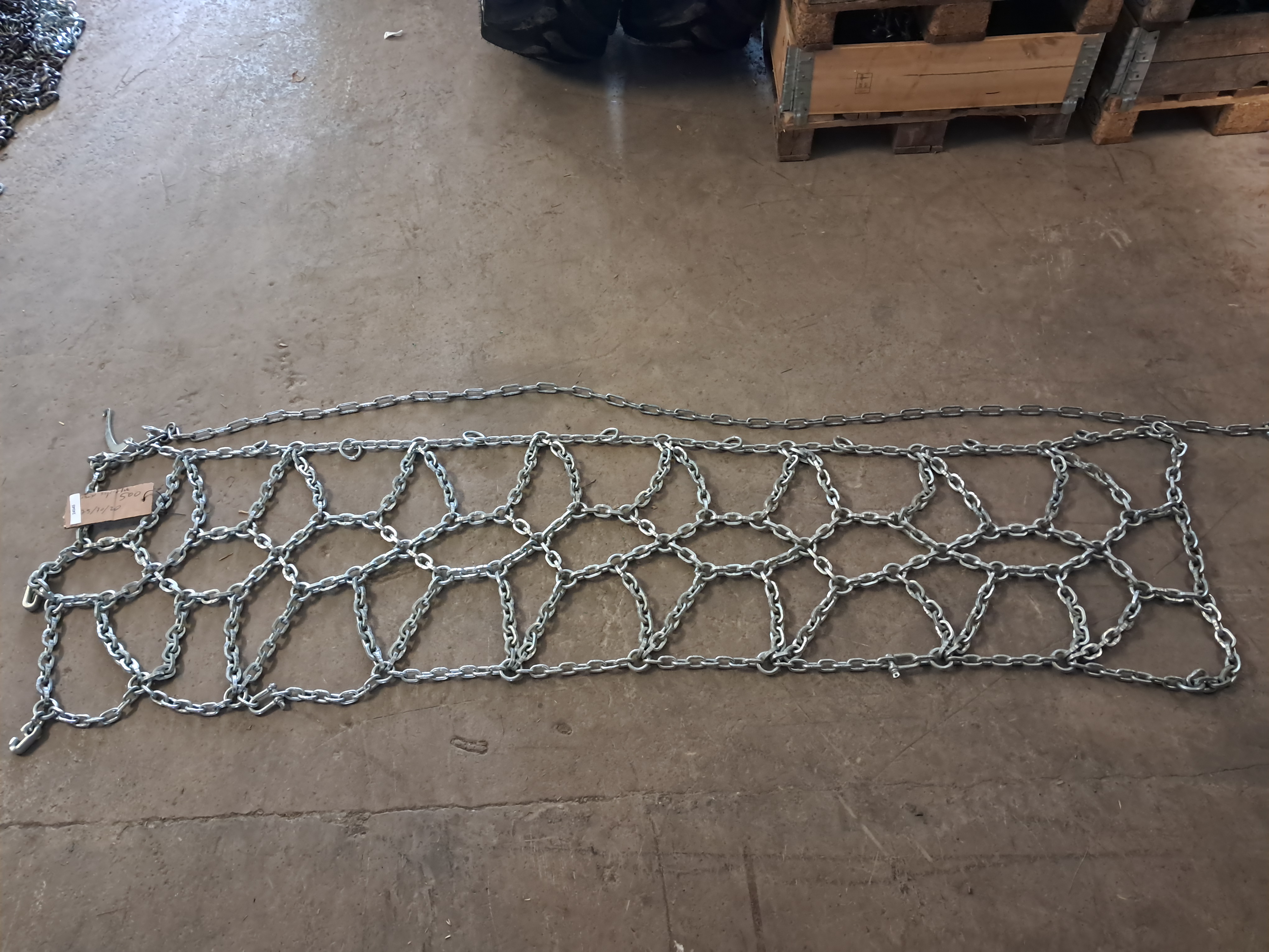 König 500 Schneekette in der Dimension 375/70-20. Die Kette ist neu und als Netzkette ausgeführt, vergleichbar mit der Veriga SS-Serie. Sie bietet hervorragende Traktion, hohe Stabilität und gleichmäßige Kraftverteilung – ideal für landwirtschaftliche und kommunale Fahrzeuge.