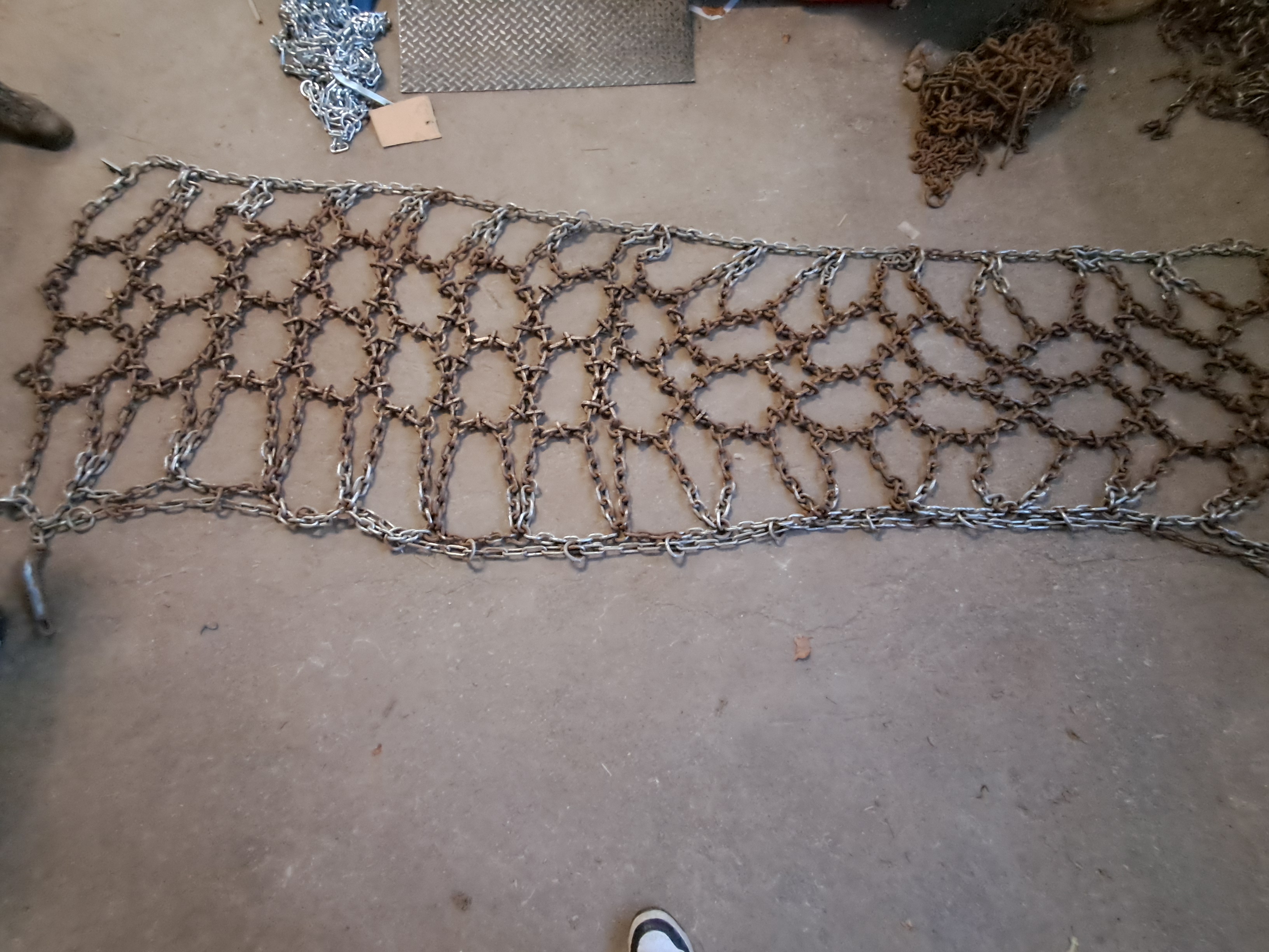 Die Kette ist gebraucht (ca. 50 % Restprofil) und stabil ausgeführt. Sie bietet soliden Grip und zuverlässige Traktion – geeignet für den Einsatz auf Schnee, Eis und im Gelände.
