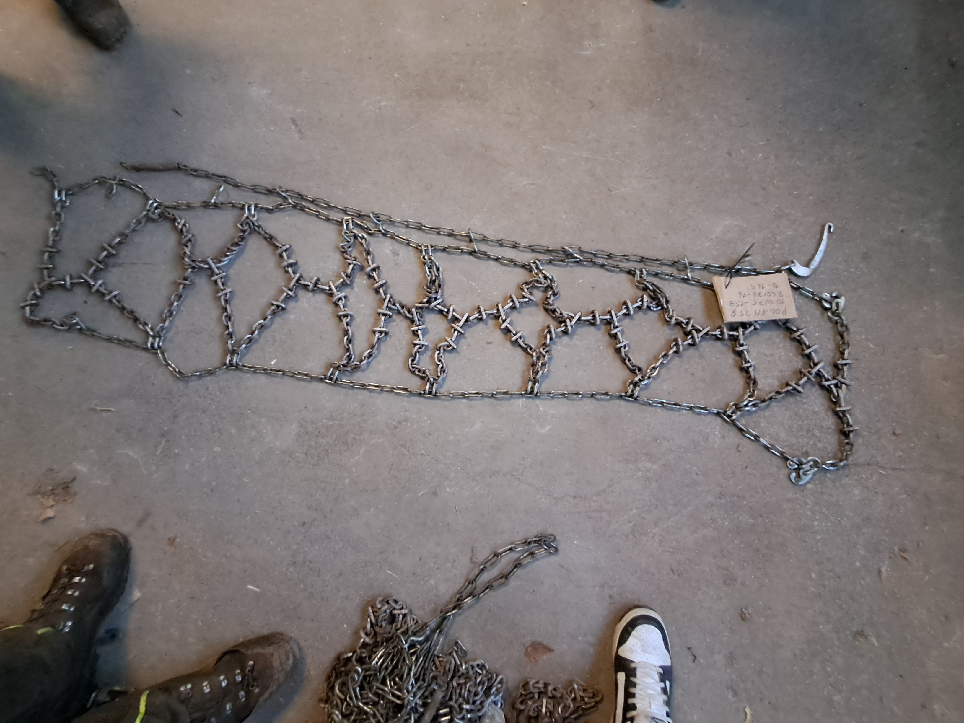 Die Ketten sind gebraucht (ca. 50 % Restprofil) und solide ausgeführt. Sie bieten ausreichenden Grip und zuverlässige Traktion – geeignet für den Einsatz auf Schnee, Eis und im Gelände.